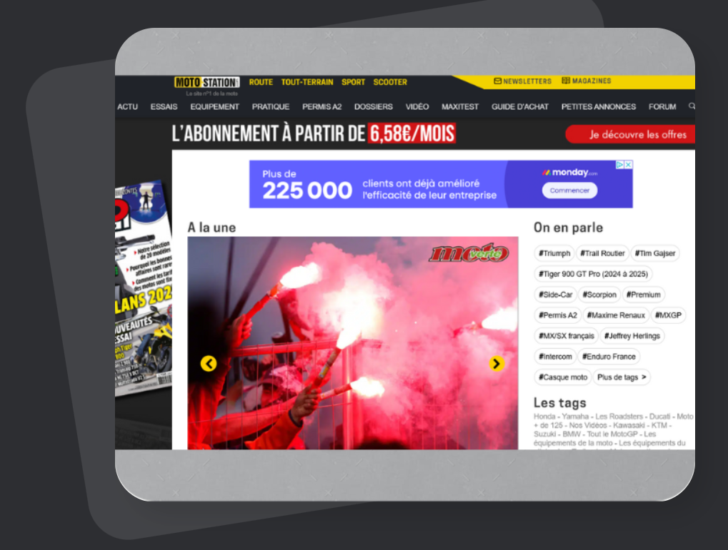 J’ai participé à la réalisation du site moto-station.com, le premier portail francophone dédié à l’univers de la moto. Ce projet m’a permis de contribuer à la création d’une plateforme complète, moderne et responsive, offrant aux passionnés un accès à l’actualité moto, aux essais, fiches techniques, comparatifs, petites annonces et avis d’utilisateurs. Mon implication a porté sur l’UX/UI, l’intégration, l’optimisation SEO et la performance, avec une approche centrée utilisateur et mobile-first.